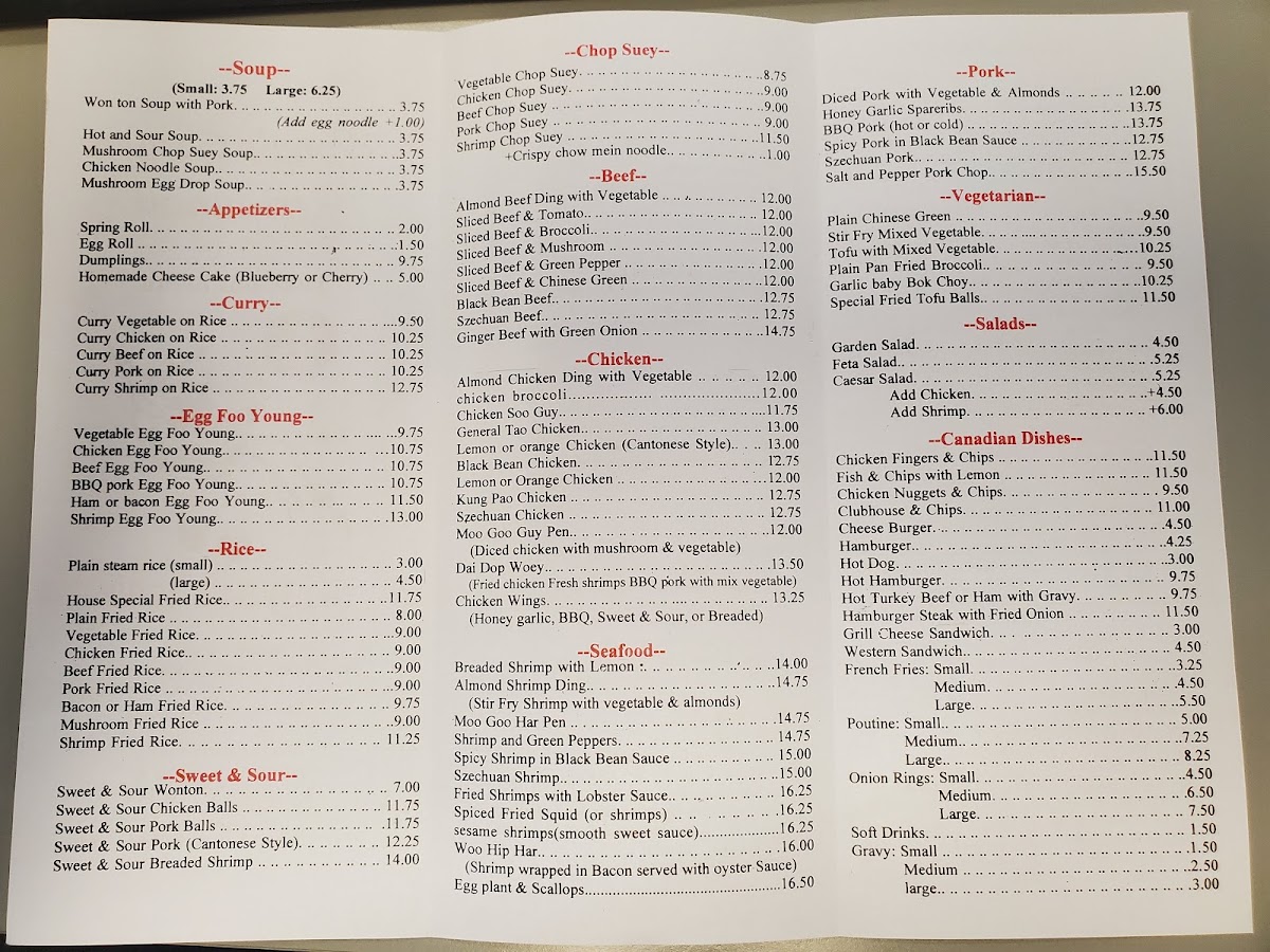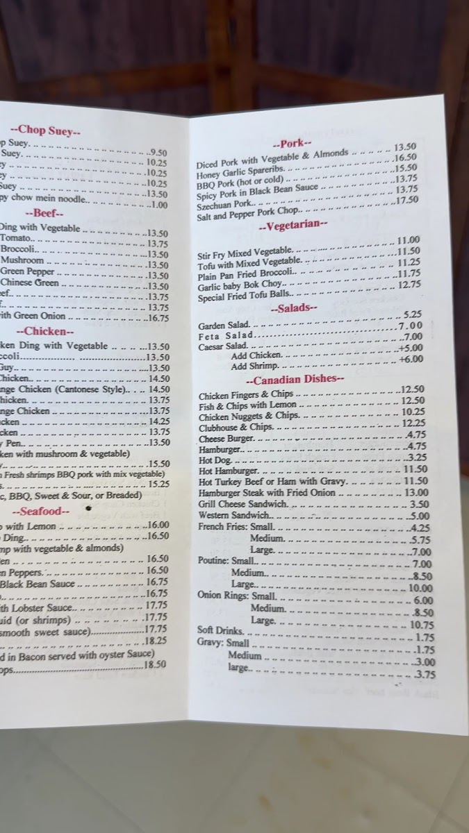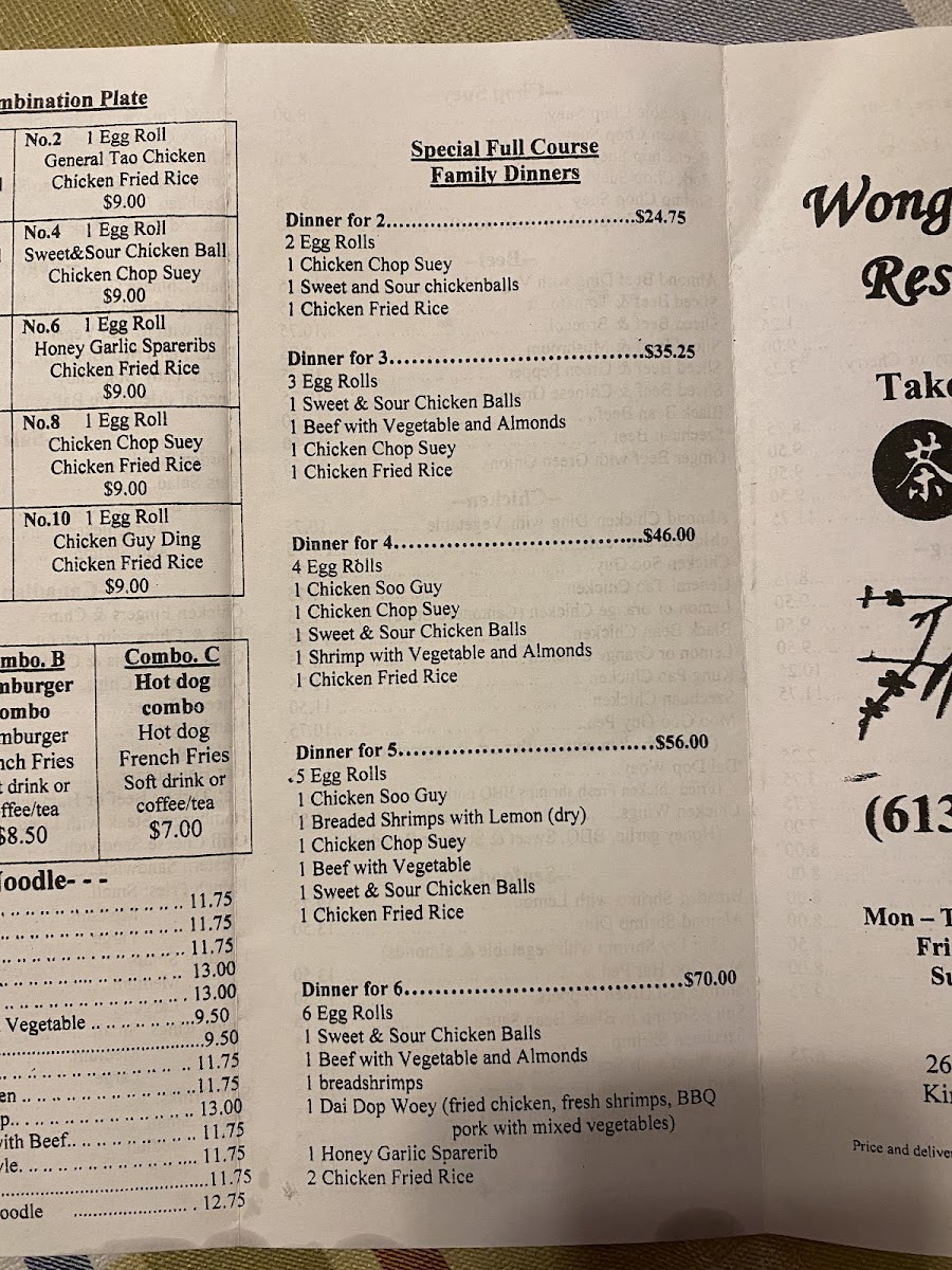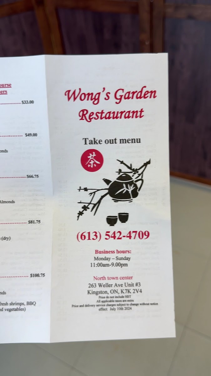 Wong's Garden Restaurant Menu